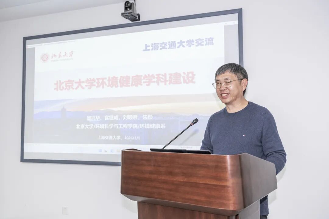 2026年3月5日,上海交通大学环境健康学科发展研讨会在上海交通大学环境科学与工程学院召开。中国科学院院士、北京大学环境科学与工程学院朱彤教授,北京大学环境科学与工程学院院长刘永,上海交通大学党委副书记胡薇薇,上海交通大学环境科学与工程学院党委书记郑浩,上海交通大学公共卫生学院副院长汪一心等出席会议。北京大学环境健康系主任宫继成、副主任刘颖君,上海交通大学妇女儿童健康系主任张军以及环境健康研究院相关科研骨干等参与研讨交流。会议由上海交通大学环境科学与工程学院院长于云江主持。
