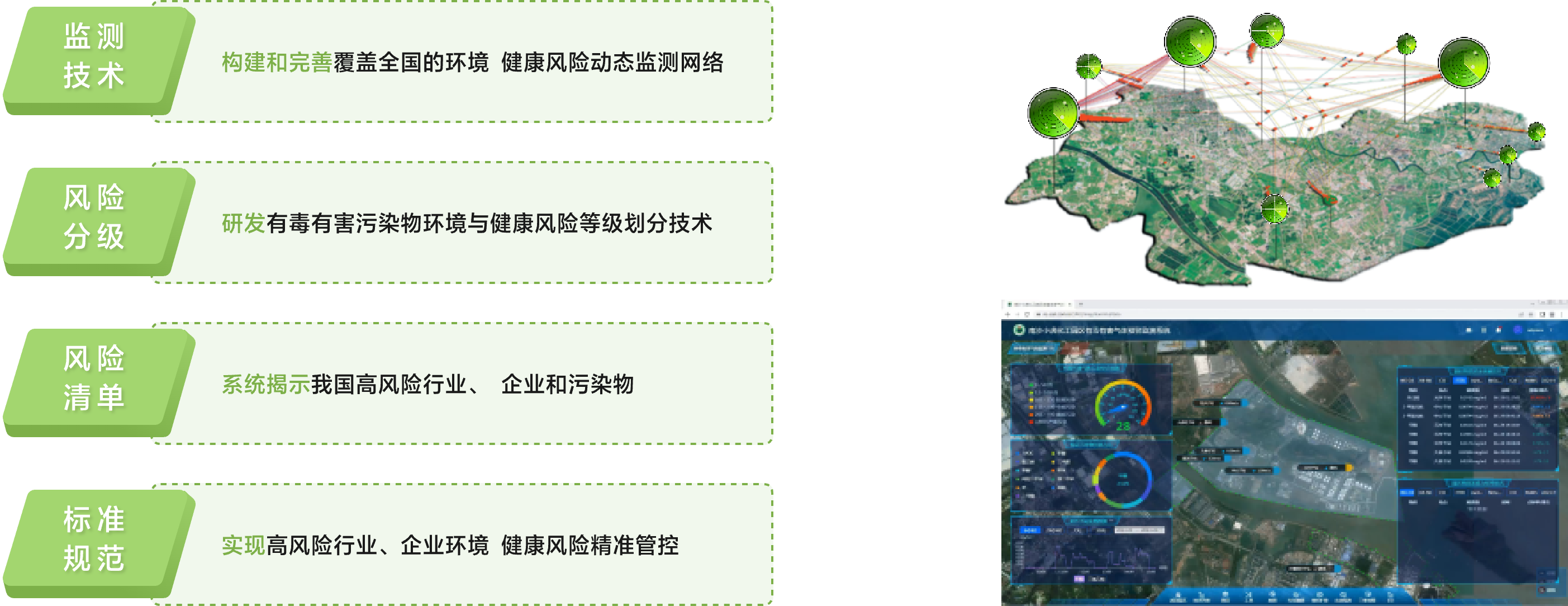 环境健康风险管控技术及标准:基于人群暴露健康风险,研究建立优先控制污染物清单构建技术;筛选区域、行业和人群环境与健康优先控制污染物清单,为环境与健康风险管控提供目标;研究多介质、多途径复合污染健康风险的“源-环境介质-人体”过程及传递机制,构建“源-暴露-健康”全链条风险防控技术方法与标准规范。